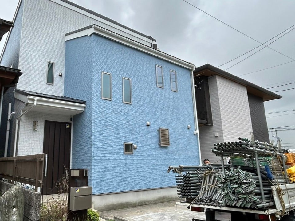 マニキュア由来のブルーグレーを外壁に落とし込み、さらに2色塗りで“唯一の一棟”へ。Y様邸の現場は、色のこだわりを形にする難しさと面白さを、両方教えてくれました。