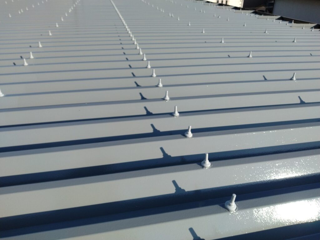 折半屋根では、固定ボルトまわりから雨水が入り込まないように、ボルト頭を覆うようにキャップが付いているケースがあります。