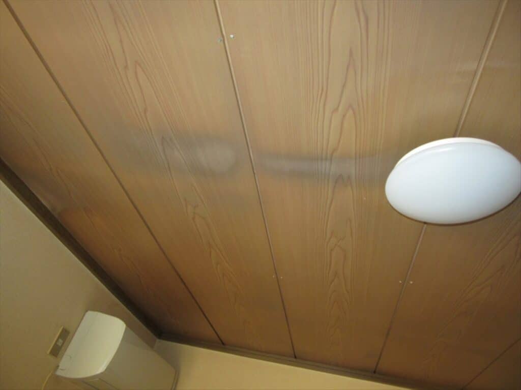 雨漏りは2階の住人のお部屋で起きて、天井から水が滴っていました。