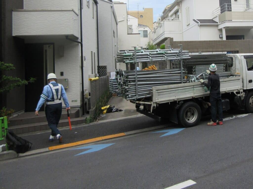 例えば、お客様の敷地が公道に面しているかつ、足場を公道に立てる時には、警察への道路使用許可・占用許可が必要です。